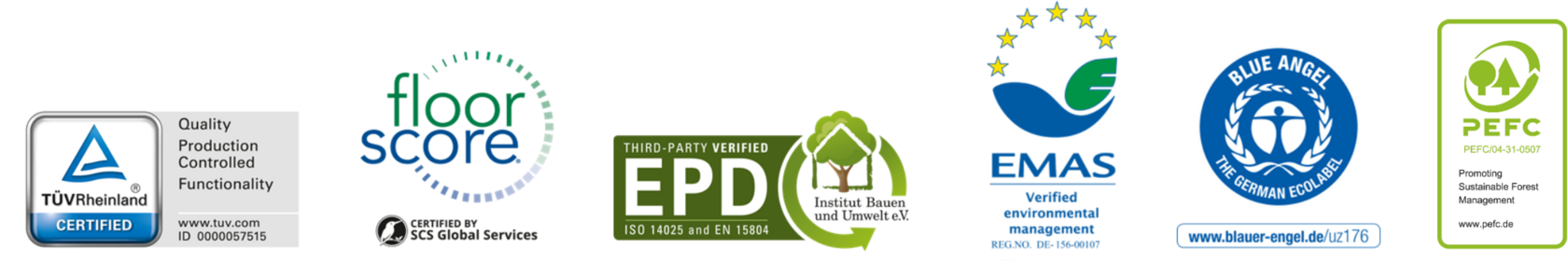 Сертификации ECO Institute, Blue Angel, ISO 14 001, PEFC®, FloorScore®, TÜV Rheinland подтверждают, что ламинат Parador соответствует строгим экологическим требованиям и является безопасным выбором для вашего дома.